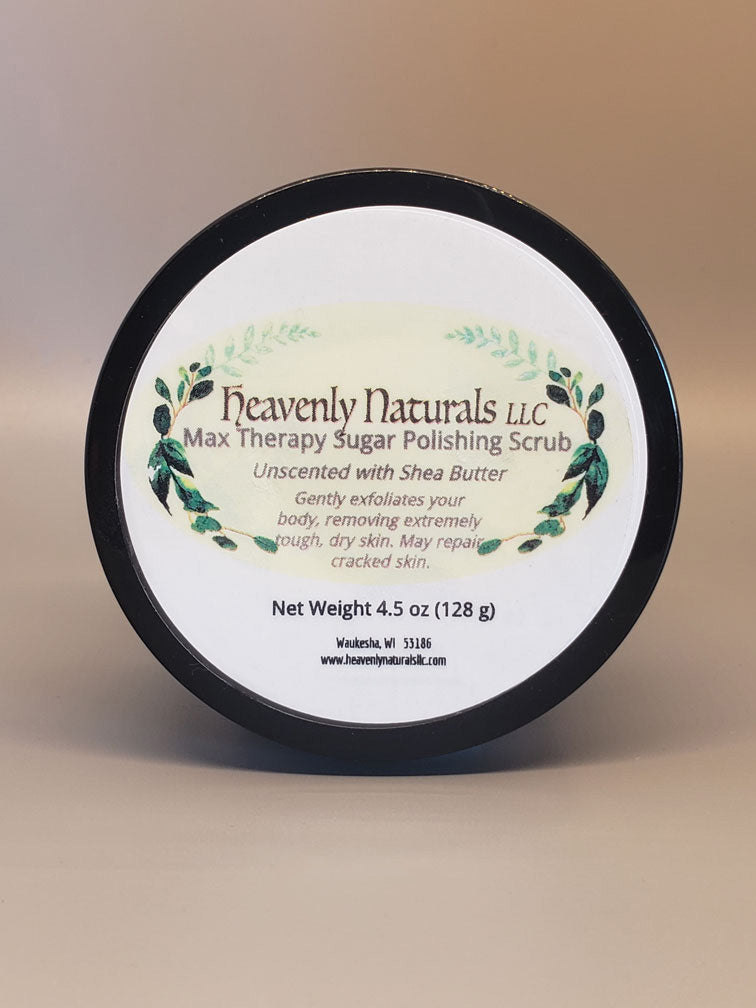 Heavenly Naturals Max Therapy Sugar Scrub removes rough, dead skin and provides extreme hydration with pure vitamin E and all-natural ingredients. It’s free of parabens and contains no artificial preservatives or chemicals.